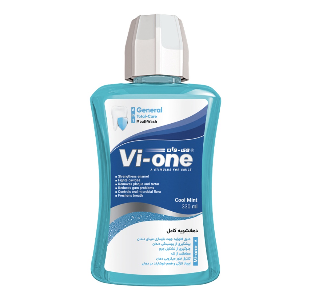 دهان شویه جنرال وی وان جمعیت باکتری ها را در سراسر حفره دهانی کاهش می دهد و به دلیل دارا بودن عصاره گیاهی نعناع و اکالیپتوس باعث حس طراوت و شادابی در مخاط دهان می شود. ویژگی ها: