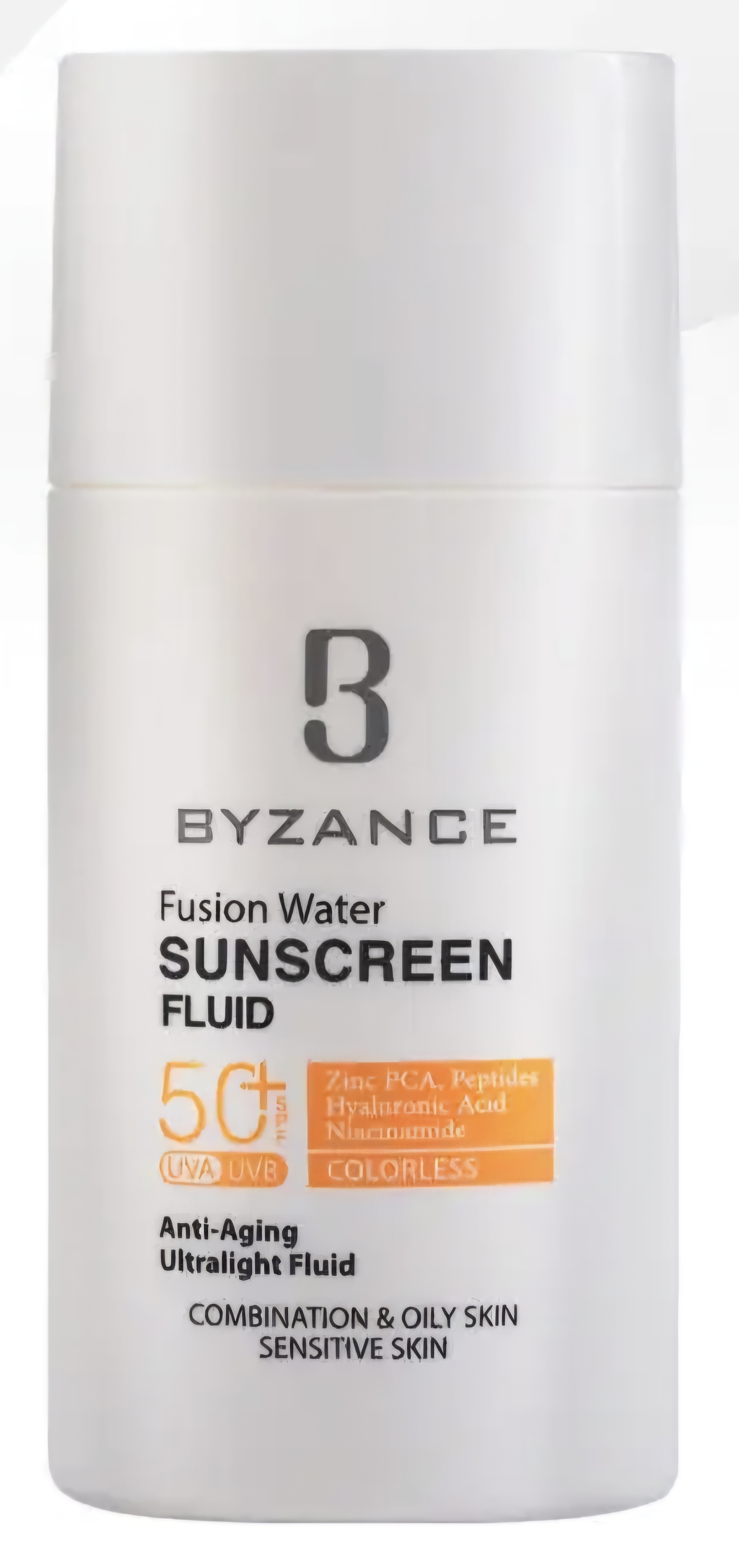 فلوئید ضد آفتاب فیوژن واتر SPF 50 بیزانس بر پایه آب بوده که برای محافظت کامل از پوست در برابر اشعه های مضر تولید شده است. این ضد آفتاب ضمن محافظت از پوست به آبرسانی قوی آن پرداخته و رطوبت مورد نیاز را در طول روز فراهم می کند. بافت فلوئیدی ضد آفتاب بیزانس باعث جلوگیری از انسداد منافذ، جوش و آکنه می گردد. استفاده از ضد آفتاب بیزانس چین و چروک های پوستی را کاهش داده و از افزایش آن ها جلوگیری می کند. همچنین فلوئید ضد آفتاب بی رنگ بیزانس با بهره مندی از نیاسینامید که دارای اثرات ضد التهابی می باشد به روشن رنگ چهره کمک فراوانی می کند. دارای بافت سبک و فلوئیدی