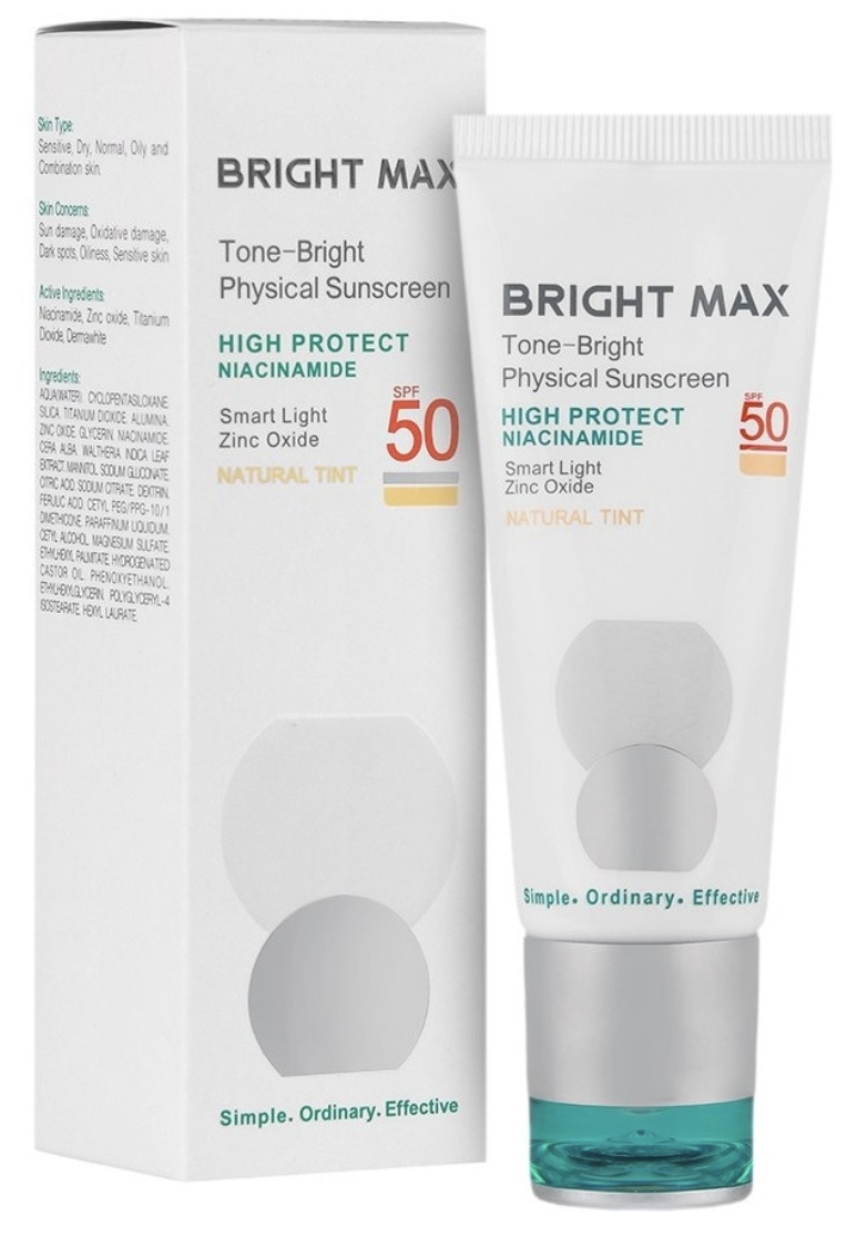 کرم ضد آفتاب فیزیکال رنگی برایت مکس مناسب پوست حساس، خشک، پوست چرب و مختلط است.