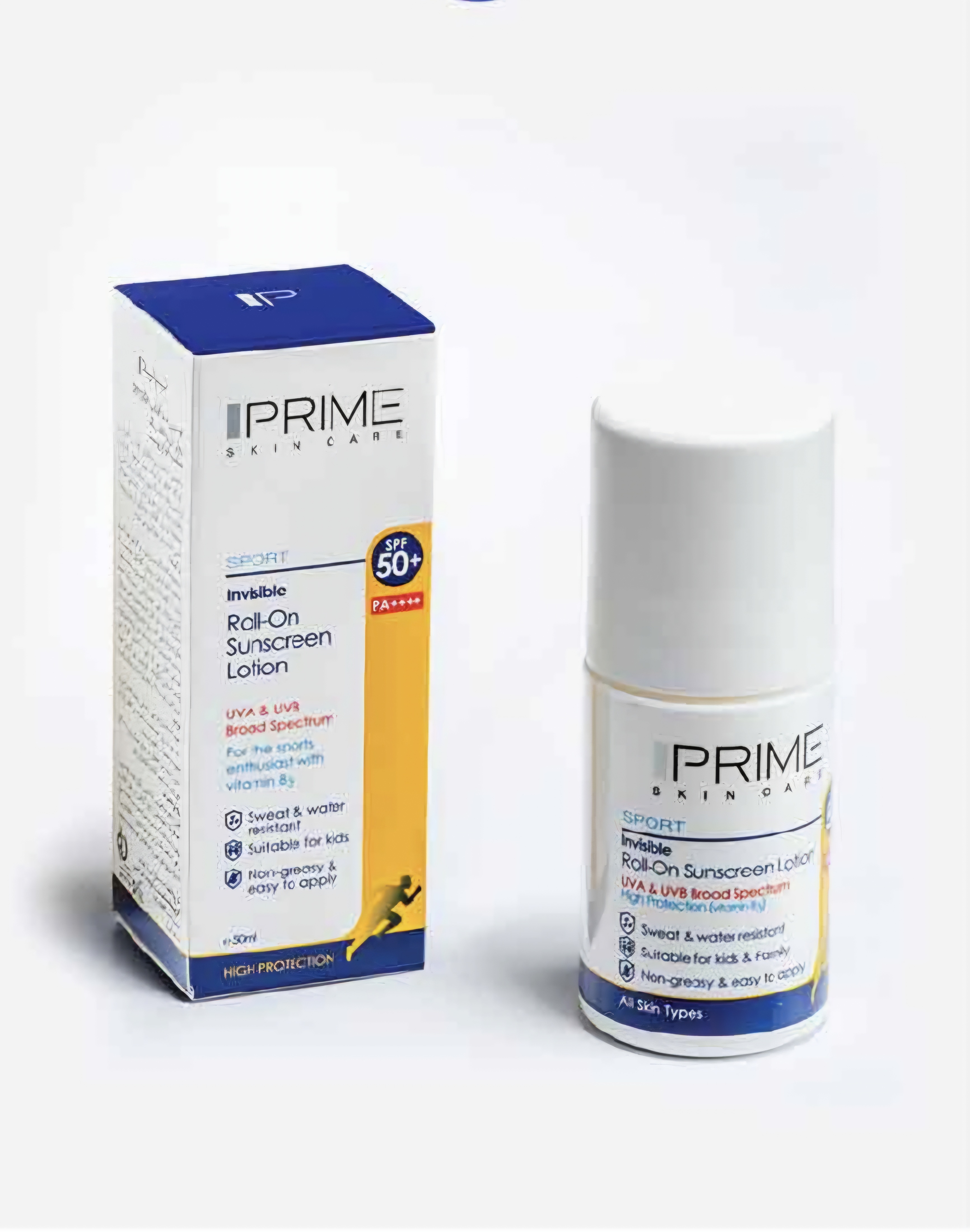 لوسیون ضدآفتاب رول-آن +SPF50 پرایم محصولی با فرمولاسیون سبک، مصرف آسان و مقاوم در برابر آب و تعریق است که ضمن حداکثر محافظت در برابر آفتاب سوختگی، از پیری پوست ناشی از آفتاب نیز جلوگیری می نماید. این ضد آفتاب برای انواع پوست، حتی کودکان مناسب می باشد. • مناسب ورزشکاران، افراد پرتحرک و کودکان