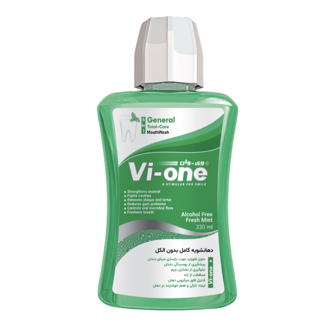 دهان شویه جنرال وی وان جمعیت باکتری ها را در سراسر حفره دهانی کاهش می دهد و به دلیل دارا بودن عصاره گیاهی نعناع و اکالیپتوس باعث حس طراوت و شادابی در مخاط دهان می شود کاهش سرعت تشکیل جرم دندان